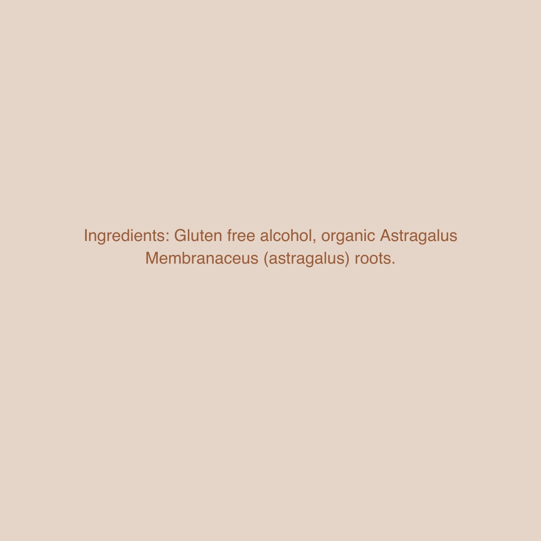 Gluten free alcohol, organic Astragalus Membranaceus (astragalus) roots.